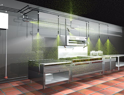 Sistema de preingeniería conformado por agente químico húmedo, tuberías, fusibles, entre otros componentes para la extinción de fuegos que involucren grasas.
